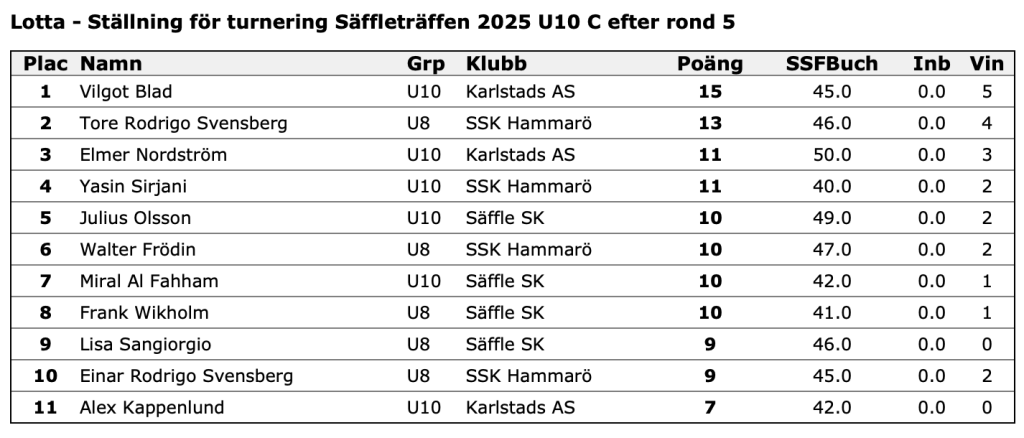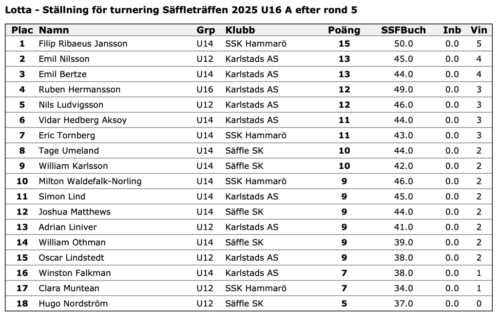 Här är resultaten för Säffleträffen 2025, som alltså är Säffles bidrag till Grand Prix-serien: