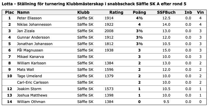 Slutställning i klubbmästerskapet i snabbschack 2025.